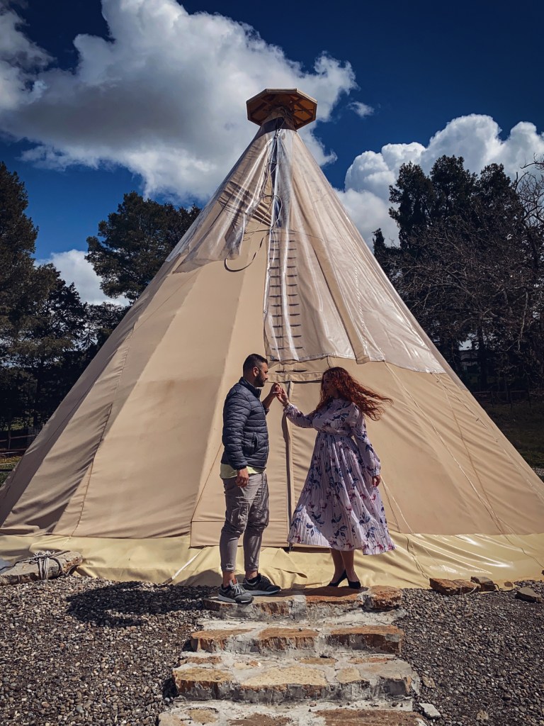 Il grande tepee indiano sorge su una collinetta riservata e molto panoramica, con tutti i comfort del vero glamping all’interno e all’esterno: riscaldata d’inverno e climatizzata d’estate.